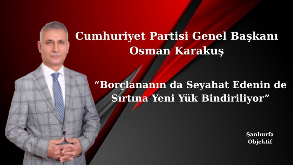 Cumhuriyet Partisi Genel Başkanı Osman Karakuş, Banka ve Sigorta Muameleleri Vergisi (BSMV) ile yurt dışı çıkış harcı tahsilatlarındaki artışa ilişkin yaptığı açıklamada, vatandaşın kredi kullanırken de seyahat ederken de ek maliyetlerle karşı karşıya bırakıldığını söyledi. Karakuş, gelir üretmenin yolunun vatandaşa yeni yük bindirmek değil ekonomiyi büyütmek olduğunu ifade etti.