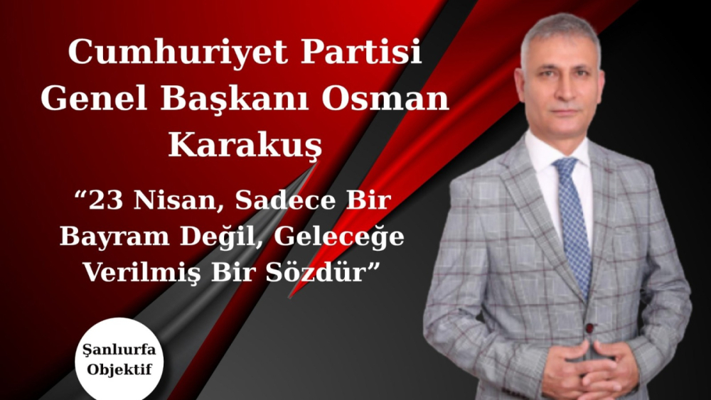 Cumhuriyet Partisi Genel Başkanı Osman Karakuş, 23 Nisan Ulusal Egemenlik ve Çocuk Bayramı dolayısıyla yayımladığı mesajda, bu özel günün yalnızca geçmişin bir hatırası değil, aynı zamanda geleceğe dair güçlü bir taahhüt olduğunu ifade etti.