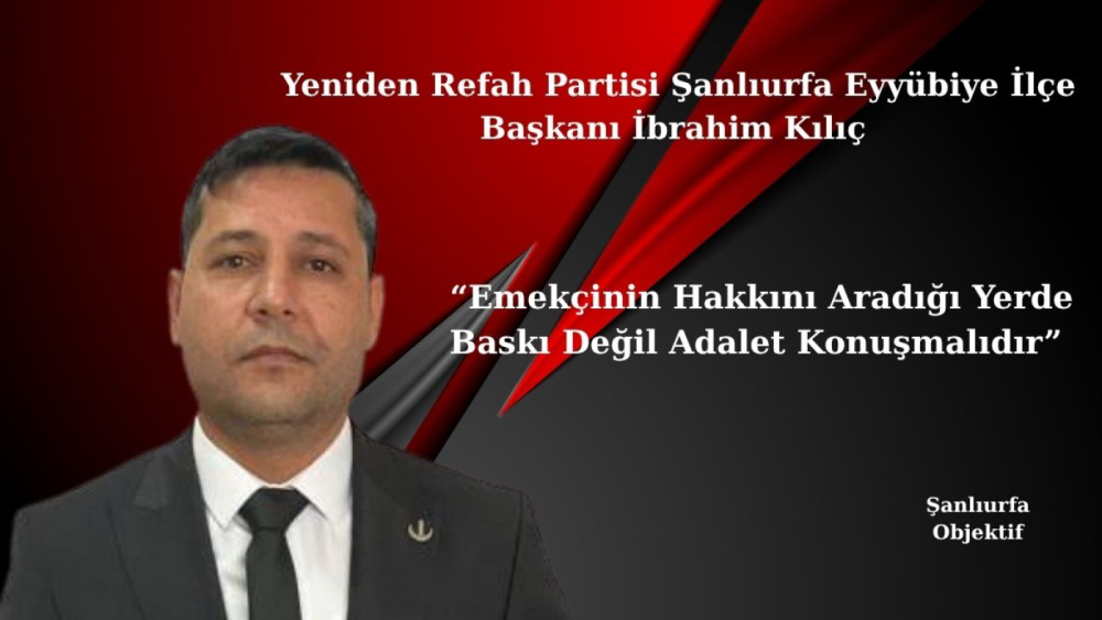 Yeniden Refah Partisi Şanlıurfa Eyyübiye İlçe Başkanı İbrahim Kılıç, işçilerin ücret ve hak kayıplarının derhal giderilmesi gerektiğini vurgulayarak yetkililere çağrıda bulundu.