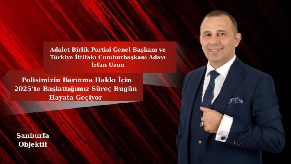 Adalet Birlik Partisi Genel Başkanı ve Türkiye İttifakı Cumhurbaşkanı Adayı İrfan UZUN, Emniyet Genel Müdürlüğü’ne bağlı polis memurlarının barınma sorununa ilişkin başlatılan resmî sürecin önemine dikkat çekerek, bu çalışmanın aslında 2025 yılında kendi girişimleriyle başlatıldığını belirtti. UZUN, bugün ilgili bakanlık tarafından atılan adımların, o dönemde ortaya koydukları projenin hayata geçirilmesi anlamına geldiğini ifade etti.