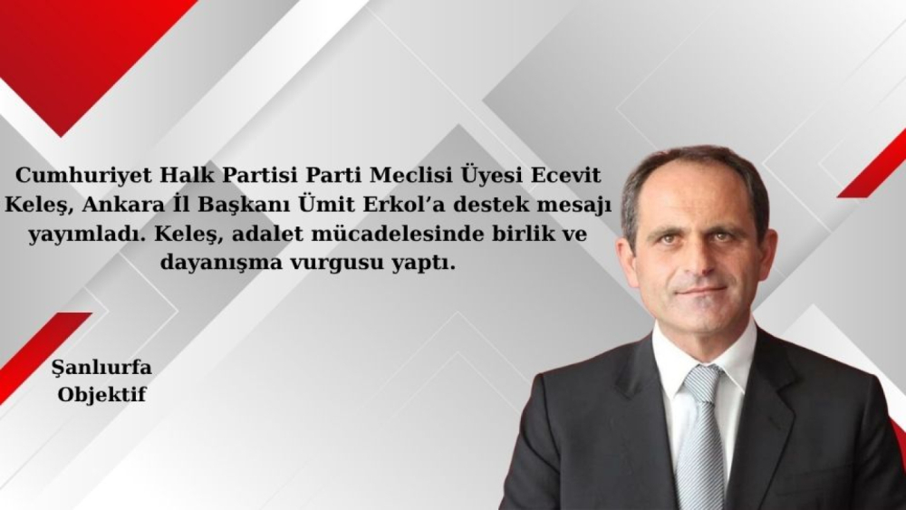 Cumhuriyet Halk Partisi Parti Meclisi Üyesi Ecevit Keleş, Ankara İl Başkanı Ümit Erkol’a destek mesajı yayımladı. Keleş, adalet mücadelesinde birlik ve dayanışma vurgusu yaptı.