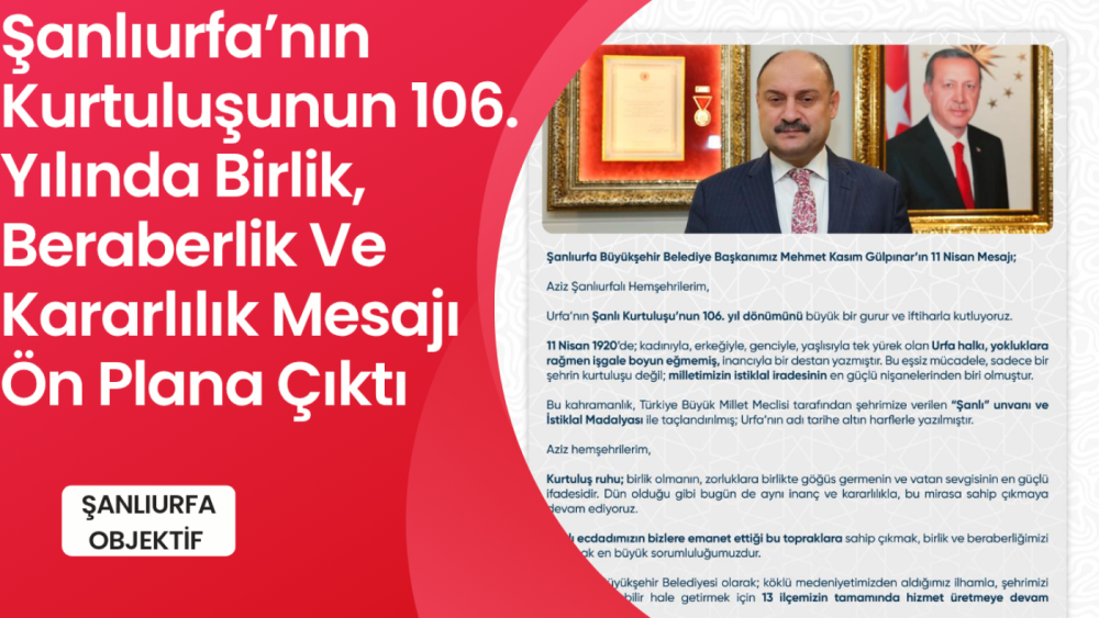 Şanlıurfa’nın düşman işgalinden kurtuluşunun 106. yıl dönümünde yayımlanan mesajda, birlik, beraberlik ve kararlılık vurgusu ön plana çıktı.